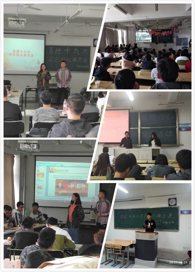 为增强团员青年的光荣感和责任感,明确新形势下共青团员所肩负的历史责任,同时在团员青年中形成崇尚先进、学习先进、争当先进的良好风气。我院分团委组织各班级团支部以“青春喜迎十九大·不忘初心跟党走”为主题开展团课。