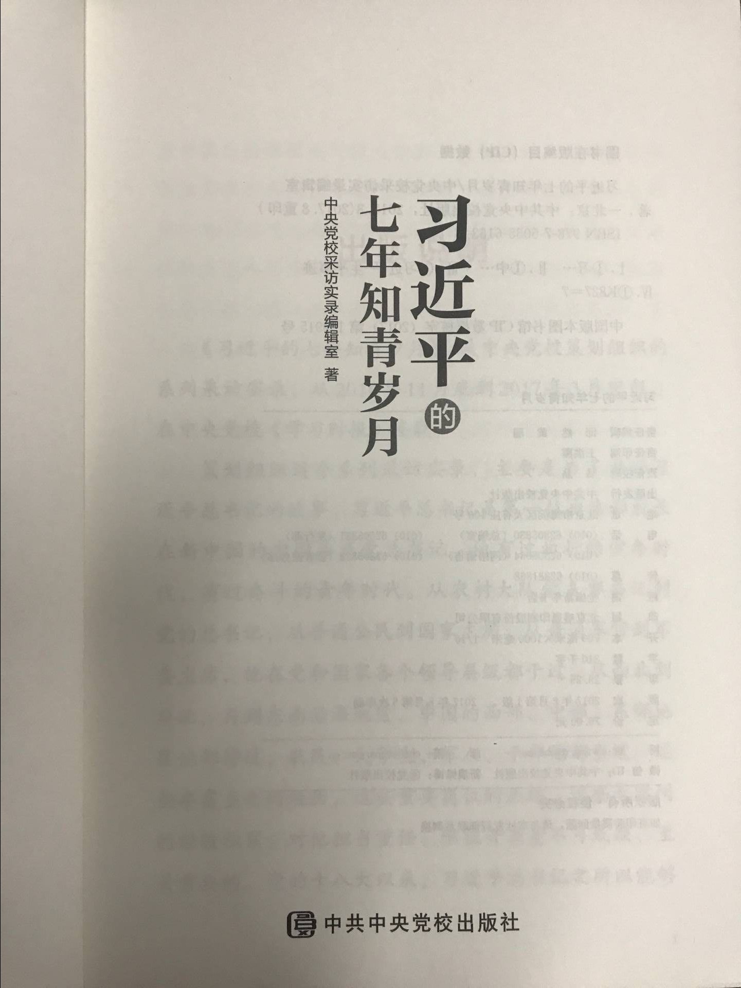 《习近平的七年知青岁月》系列采访实录由中共中央党校出版社出版,2017年8月在全国发行,这组采访实录共采访了29人,其中既有同他一起插队的北京知青,又有同他朝夕相处的当地村民,还有当年同他相知相交的各方面人士。这些受访者通过自己的亲身经历,用真实的历史细节讲述了习近平总书记当年“苦其心志、劳其筋骨、饿其体肤、空乏其身”的历练故事,再现了习近平总书记知青时期的艰苦生活和成长历程。